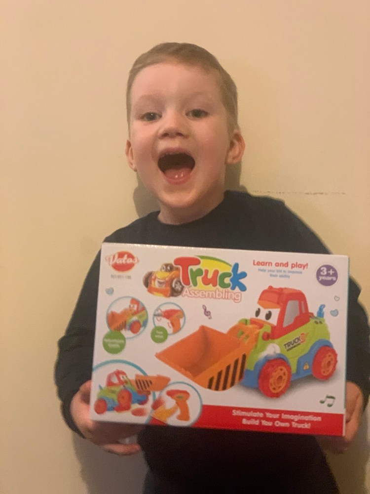 Today we received a bulldozer truck from Vatos toys. Oscar was very excited to open it and play. From the start I liked how kid friendly it was all the pieces were smooth plastic with no sharp bits or badly placed clips to trap or hurt little fingers. That being said I loved how sturdy it was and the tools are chunky which helps little hands to hold them! Oscar really enjoys building things and this was no different he jumped straight into screwing on the wheels and various other items. He then took great delight in taking it all apart again to build it back up. He was really interested in this toy and played with it for ages. It also needed batteries (5 x AA) however this turned it into an all round great toy it was musical and lit up with forwards and backwards movements making it an interactive toy.