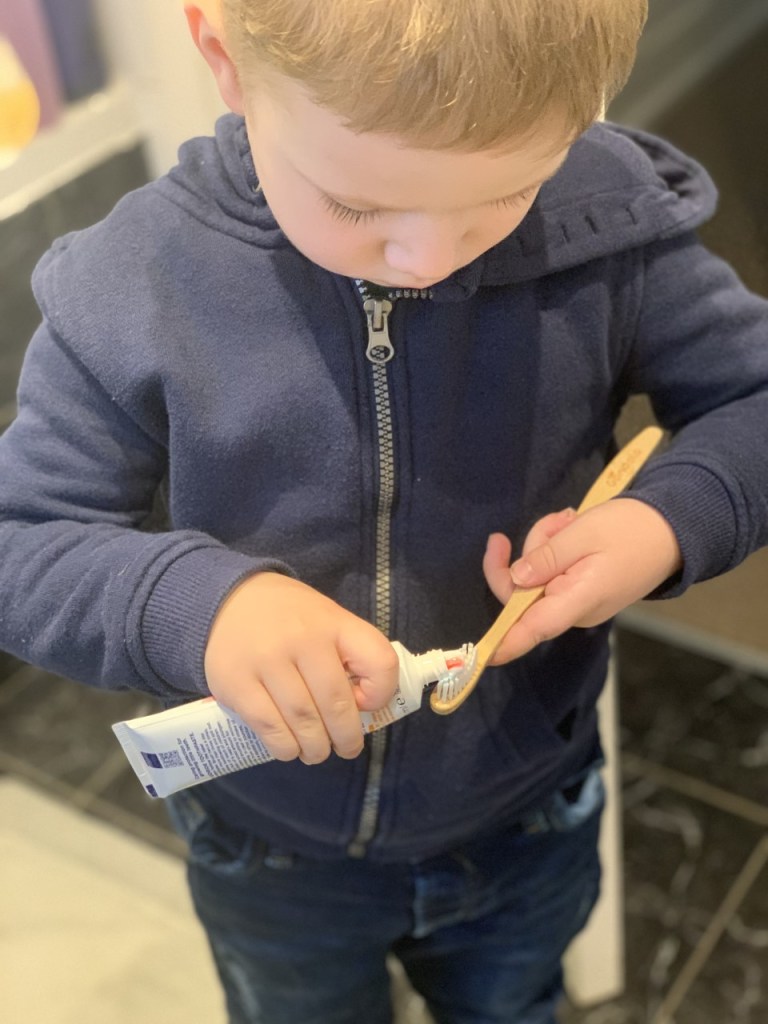 Today we were gifted some great little toothbrushes, these are made from bamboo and what makes them even better is that they are fully bio-degradable. The bristles on them are soft but still clean greatly, even on Oscars little teeth. The wood itself is sturdy and has a sleek design.